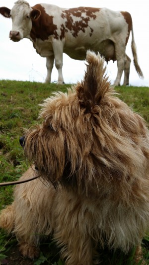 Hat ihr Hund Angst vor Kühen und bellt diese an, suchen sie sich ein Wandergebiet in dem sie Kühe weiträumig umwandern können und keine Weidegebiete passieren müssen. Vielleicht finden sie auch ein Gebiet in dem Kühe nur in eingezäunten Bereichen stehen.