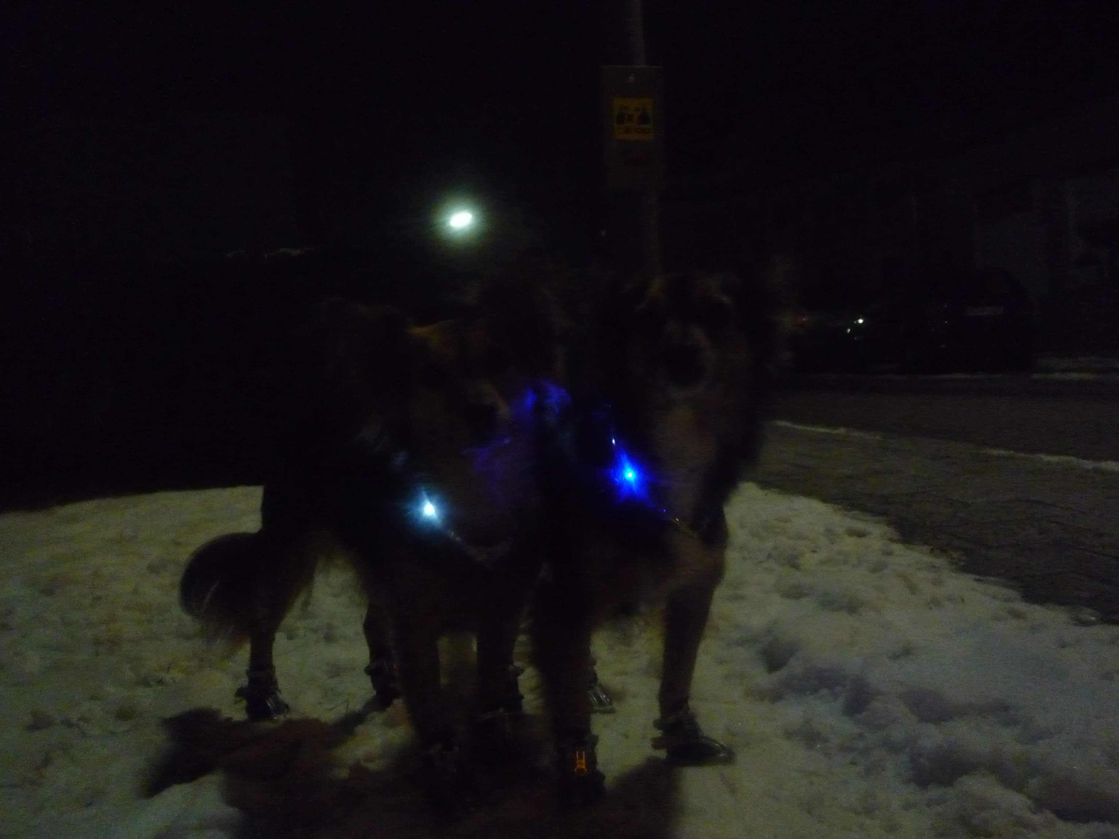 Aber leider hat der Schnee auch seine Nachteile. Also, eigentlich ist es ja gar nicht der Schnee, sondern das, was die Menschen damit machen. Die meisten schaufeln ihre Gehwege ja frei und streuen Steinchen oder Sand. Es gibt jedoch leider etliche, die dieses Salz auf den Weg streuen, und das tut in den Pfoten ganz furchtbar weh, vor allem, wenn die Pfoten von den Steinchen schon etwas wund sind. Die Frage ist nur, was hund, oder besser gesagt mensch, da tun kann. Wir wohnen in der Vorstadt, also können wir nicht auf irgendwelche Feldwege ausweichen, ohne immer Auto zu fahren. Die letzten Jahre war es besonders schlimm, also hat uns unser Mensch Schuhe gekauft. Wir haben sehr lang im