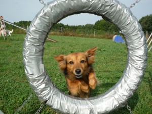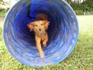 Lustig war auch das Longieren: Da steht der Mensch in der Mitte eines Kreises und wir Hunde müssen außenherum laufen und über Hindernisse hüpfen. Ich fand das sehr unterhaltsam, weil sich unser Mensch wirklich dämlich angestellt hat. Meiner Schwester war das zu fad und sie zog ihre A-Wand vor. Unsere große Stunde kam an dem Tag, den unser Mensch am meisten gefürchtet hatte: die Zielobjektsuche. Nachdem unser Mensch uns ja immer für reichlich kurzriechig hält, erwartete sie eine Blamage. Aber wir waren so gut, da muss sich jeder Fährtensuchhund verstecken. Gut, das ist vielleicht etwas übertrieben, aber kurzriechig sind wir definitiv nicht! Wir sollten nämlich Gummientchen und andere Sachen finden, die nach unserem Menschen rochen. Ich habe zur Sicherheit immer wieder nachgefragt, ob ich weitersuchen soll, denn schließlich will hund ja auf keinen Fall einen Fehler machen und einen Keks aufs Spiel setzen! Die Menschen hatten dafür natürlich wie immer kein Verständnis und fanden das furchtbar lustig. Meine Schwester Lilly, die sich ja nie über irgendetwas Gedanken macht, lief einfach los und fand unsere Ente. Und das, ohne ein einziges Mal nachzufragen! Ich hätte mich das nicht getraut. Aber es ging ja alles gut und auch meine Schwester bekam ihren Keks. Für ihr riskantes Verhalten wurde sie sogar noch bewundert! „Selbstständigkeit“ nennen die Menschen das. Überhaupt fand unser Mensch Anjas Ideen so gut, dass sie immer wieder anderen Menschen davon erzählt. Da geht es dann um ein gewisses „System“ und andere Fremdwörter, aber zu viel will ich nicht verraten, denn ihr sollt ja mit euren Menschen selbst hinfahren und es euch erklären lassen!