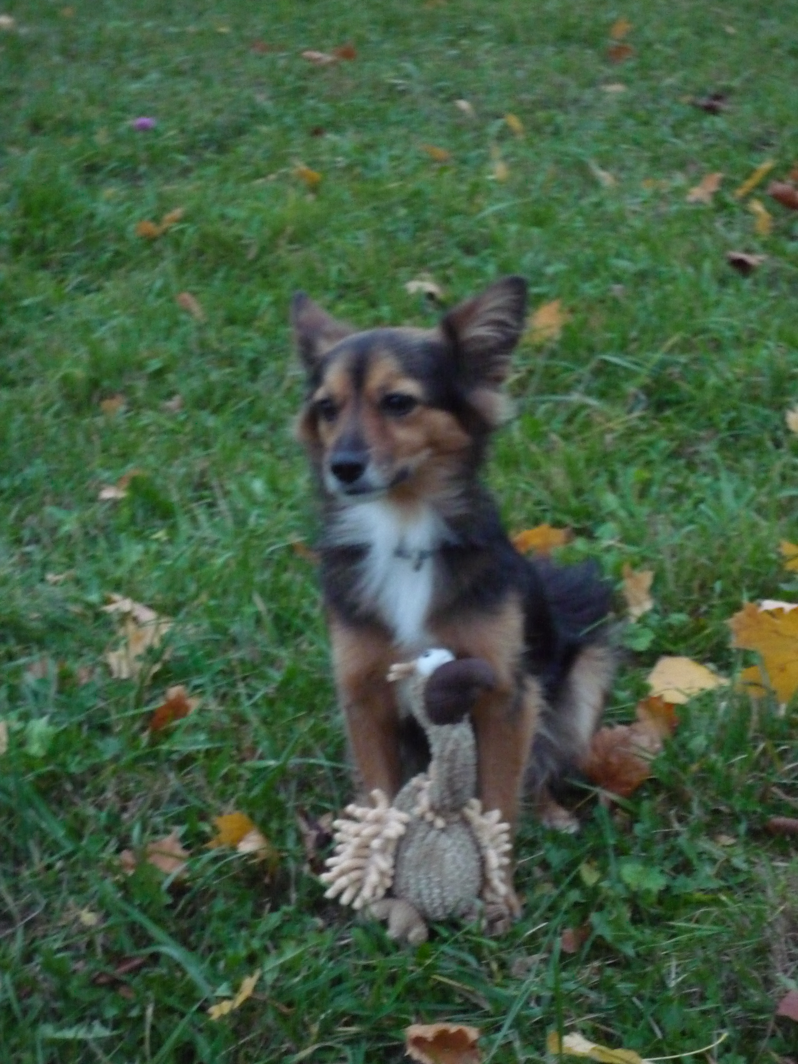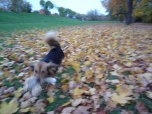 Meinung ist, Stöckchen sind gefährlich für Hunde, und das könne man doch jetzt ausbauen, wenn wir schon apportieren. Also wurde unser Spiel komplizierter. Und damit meine Schwester auch verstand, worum es ging (Ha!), spielten wir mit unserer Reizangel, die wir ja ohnehin recht unterhaltsam finden, eine Art Apportiervariante, und da hat Lunka es dann auch kapiert. Mittlerweile können wir fünf verschiedene Spielsachen unterscheiden, die wir dann im Tausch gegen einen Keks bringen. Wobei meine Schwester das Ganze natürlich wieder viel zu ernst nimmt. Die zittert dann und kläfft und fiept, dass es eine Schande ist. Wenn ich nicht weiß, ob jetzt der Geier oder das lustige Ahornblatt gemeint ist, laufe ich einfach auf gut Glück los; irgendwas passt dann schon. Ihr seht also, ich bin alles andere als doof, nur etwas flexibler als meine Schwester…